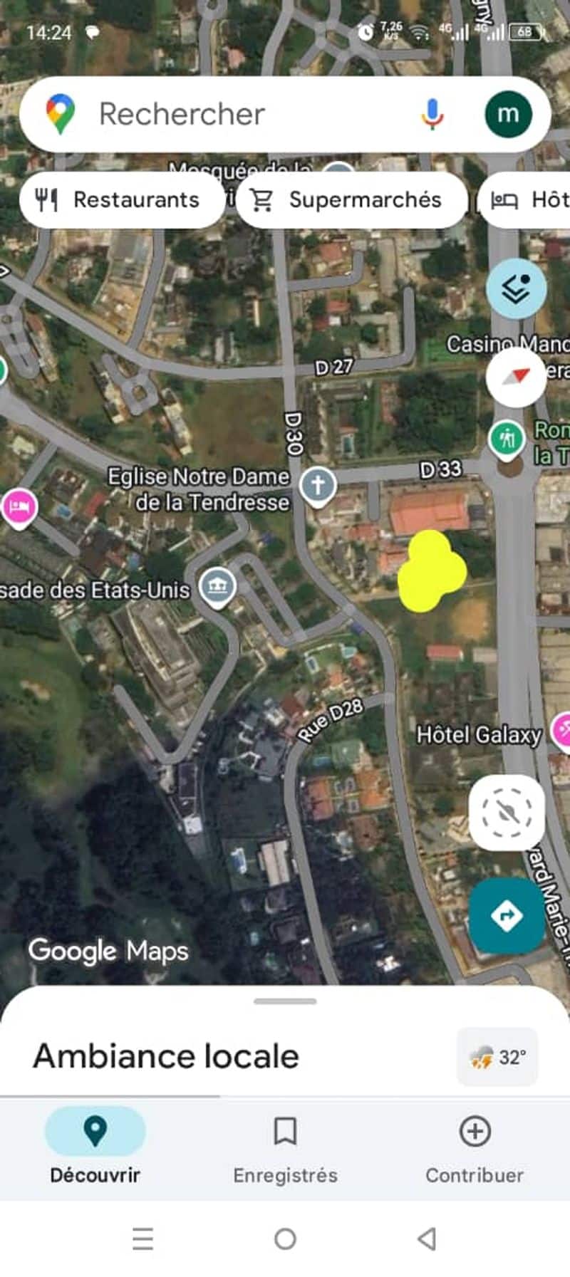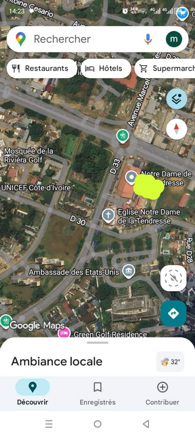 Situé dans le dos de l’église catholique LA TENDRESSE et à quelques pas de l’ambassade USA