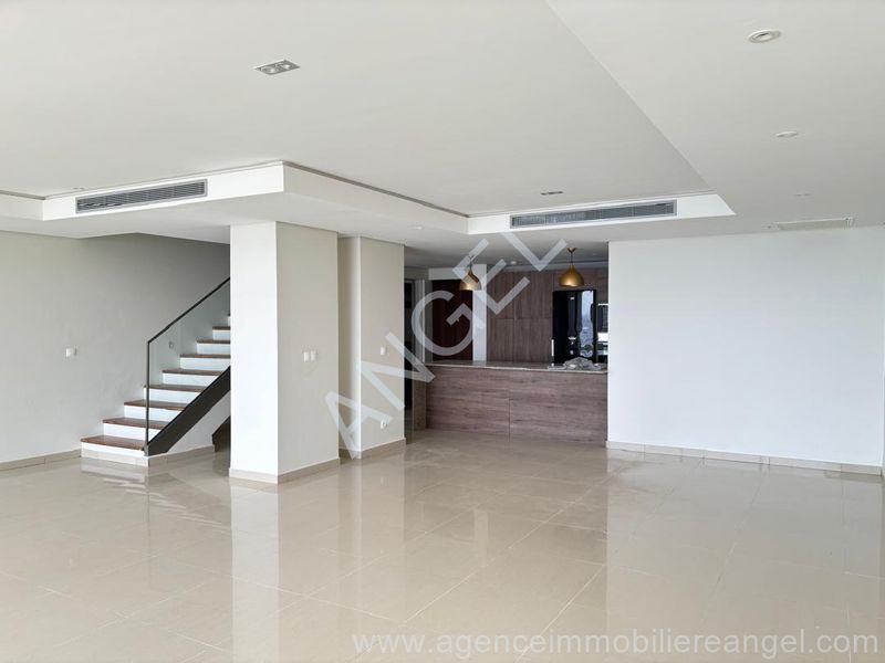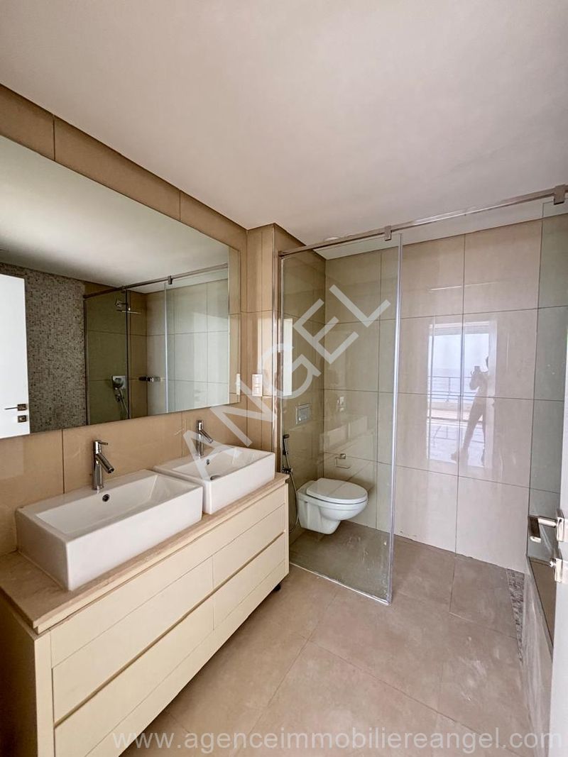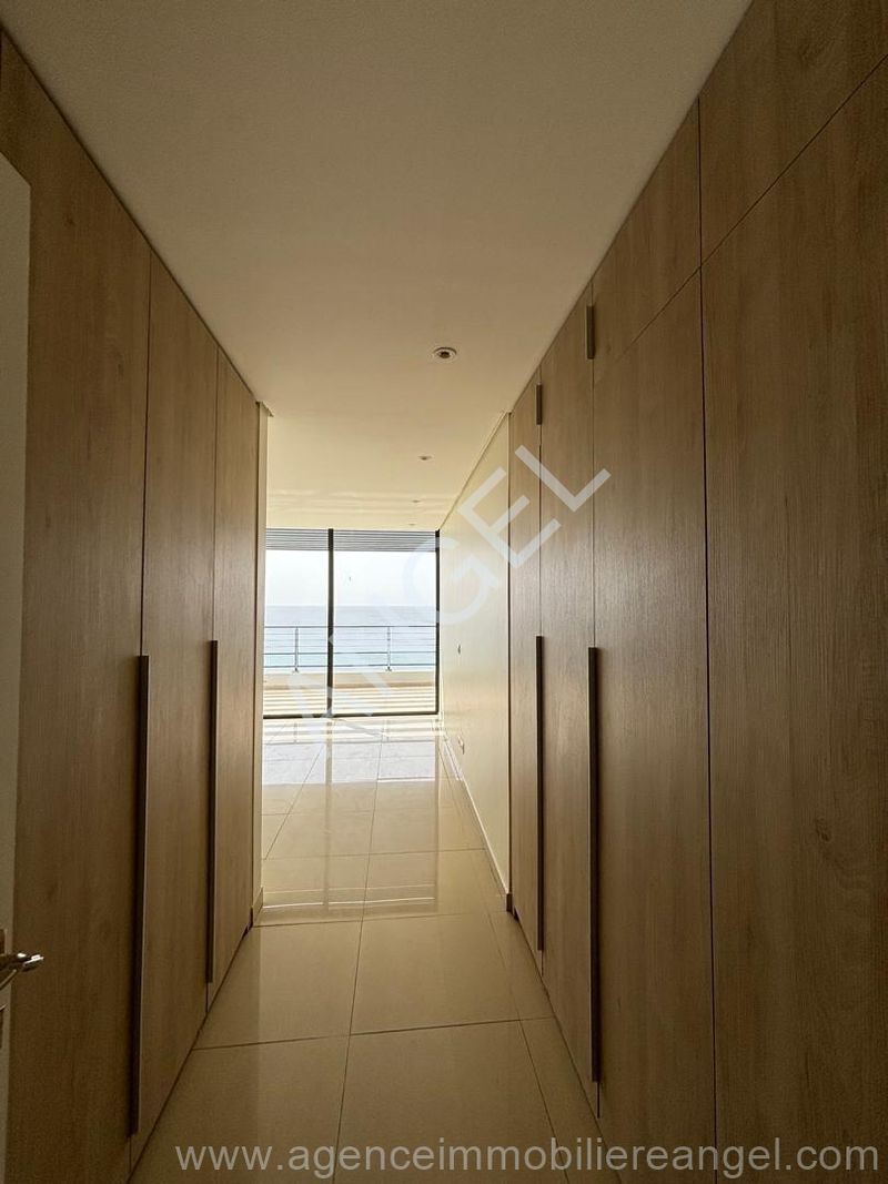 Duplex on the 3rd floor with sea view, comprising 3 bedrooms, 2 bathrooms, built-in wardrobes, air conditioning, fully equipped kitchen (oven, microwave, extractor hood, hob, dishwasher), guest toilet, and 2 terraces with sea views. Located in a residence with all amenities: swimming pool, gym, banquet hall, and private beach.