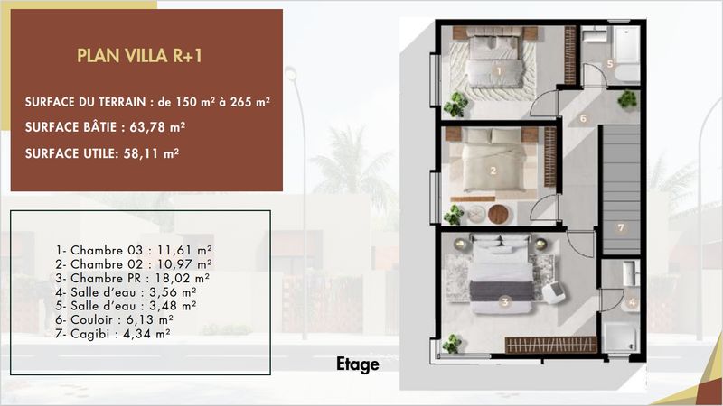 3 chambres, architecture moderne, quartier sécurisé.