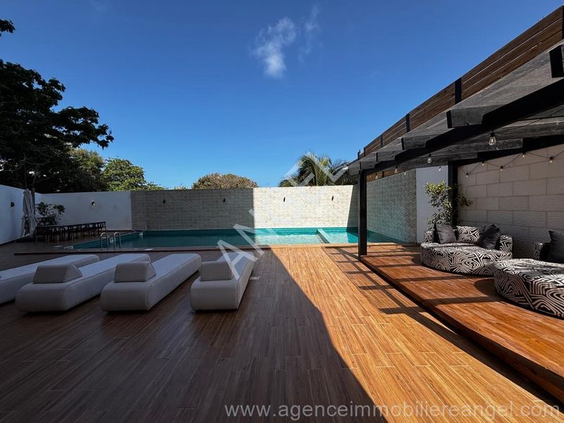 Situé aux 4 étages avec vue sur mer. Il est composé du salon, cuisine équipée, 3 chambres avec placard avec 3 salles de bain et balcon, buanderie et toilette domestique, une pièce de stockage, toilette visiteur.
