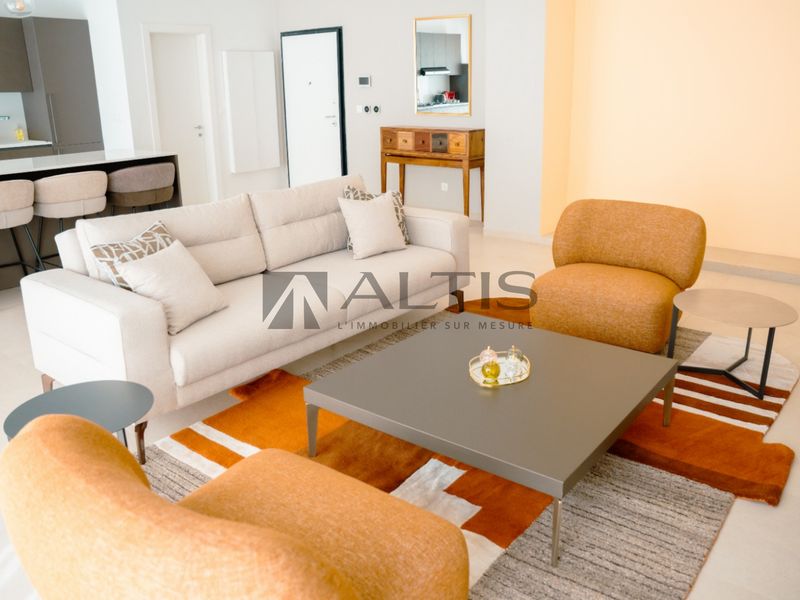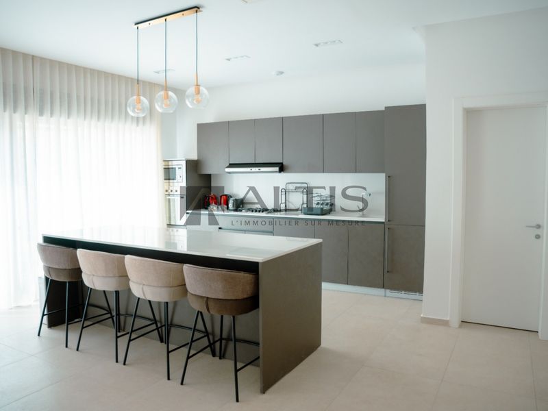 Vous bénéficierez d’un espace intérieur pense pour une clientèle exigeante, raffiné et prolongé par une vaste terrasse privée, idéale pour profiter d’un cadre de vie serein et lumineux. Les matériaux nobles, les finitions haut de gamme et la cuisine moderne entièrement équipée soulignent le caractère premium de cet appartement.