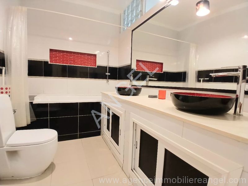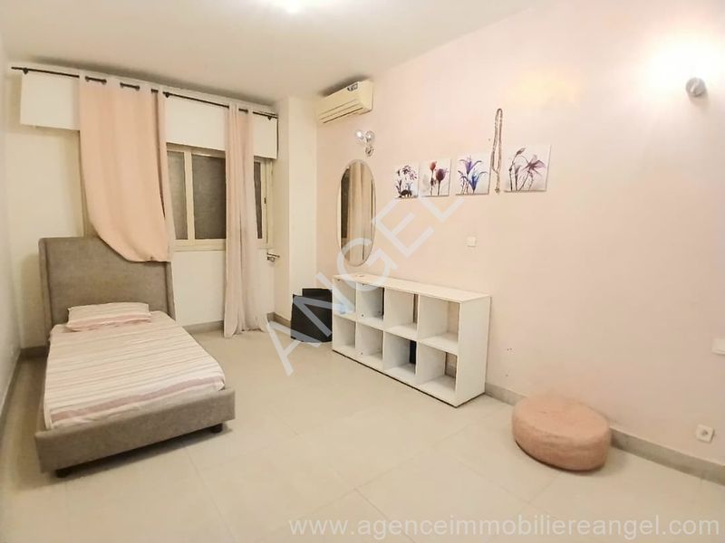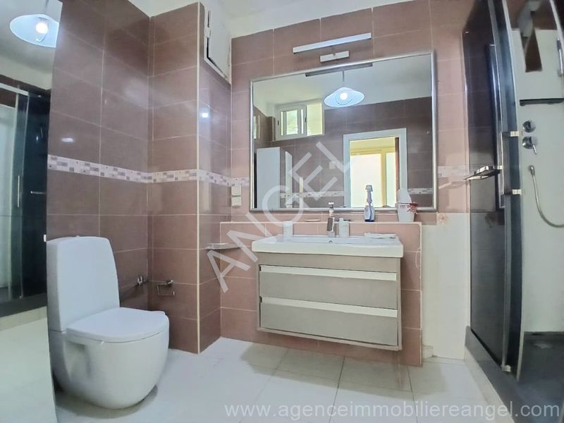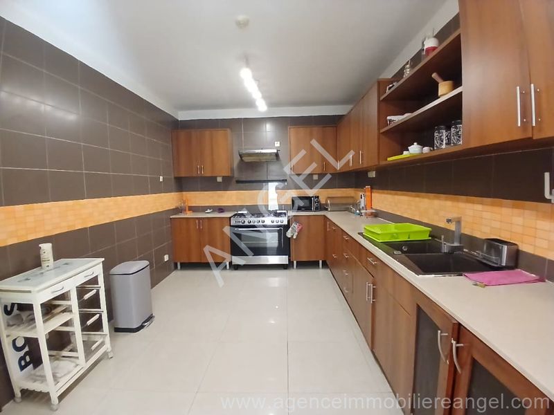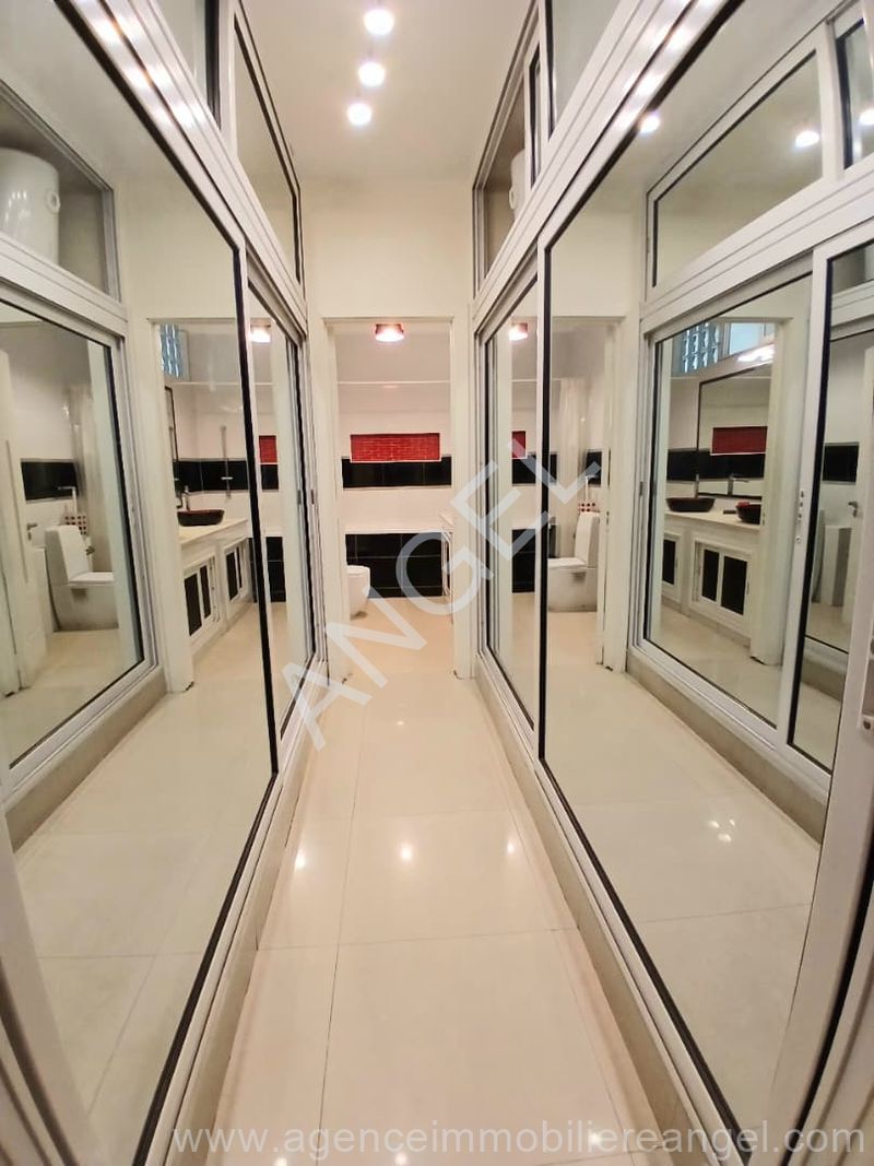 Composé de 3 chambres, 2 salles de bain, toilette visiteurs, cuisine équipée, terrasse, toilette domestique, salon avec balcon