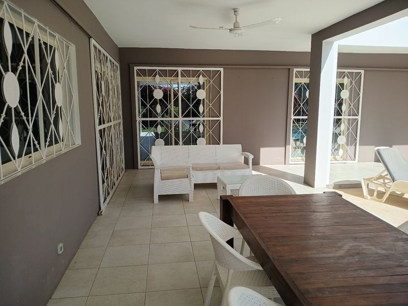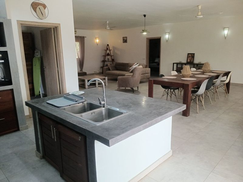 out proche du rond point de Ngaparou et du centre ville , à 100 m de la route de DAKAR et face l’école bilingue EBA villa de 205 m2 habitables comprenant une très grande pièce a vivre, avec salon ,séjour , salle à manger . 4 chambres dont 1 indépendante avec chacune sa salle d’eau , une cuisine équipée avec ilot central , une 2ème cuisine indépendante , une buanderie . La villa est entièrement meublée et décorée A l’extérieur sur un grand terrain arboré de 1226 m2 , une grande terrasse aménagée , une piscine à énergie solaire , un grand garage fermé . Batteries / onduleur en cas de coupure , panneaux solaires , .forage réseve d’eau , jardin arboré .