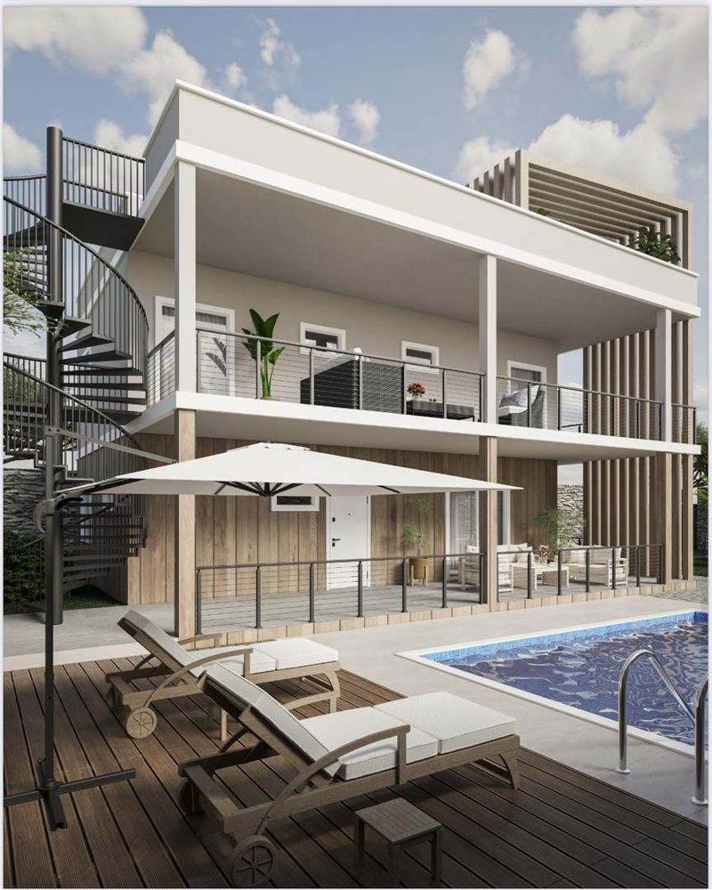Piscine 4×8 alimentée à l’énergie solaire ainsi qu’une grande partie du fonctionnement de la villa.