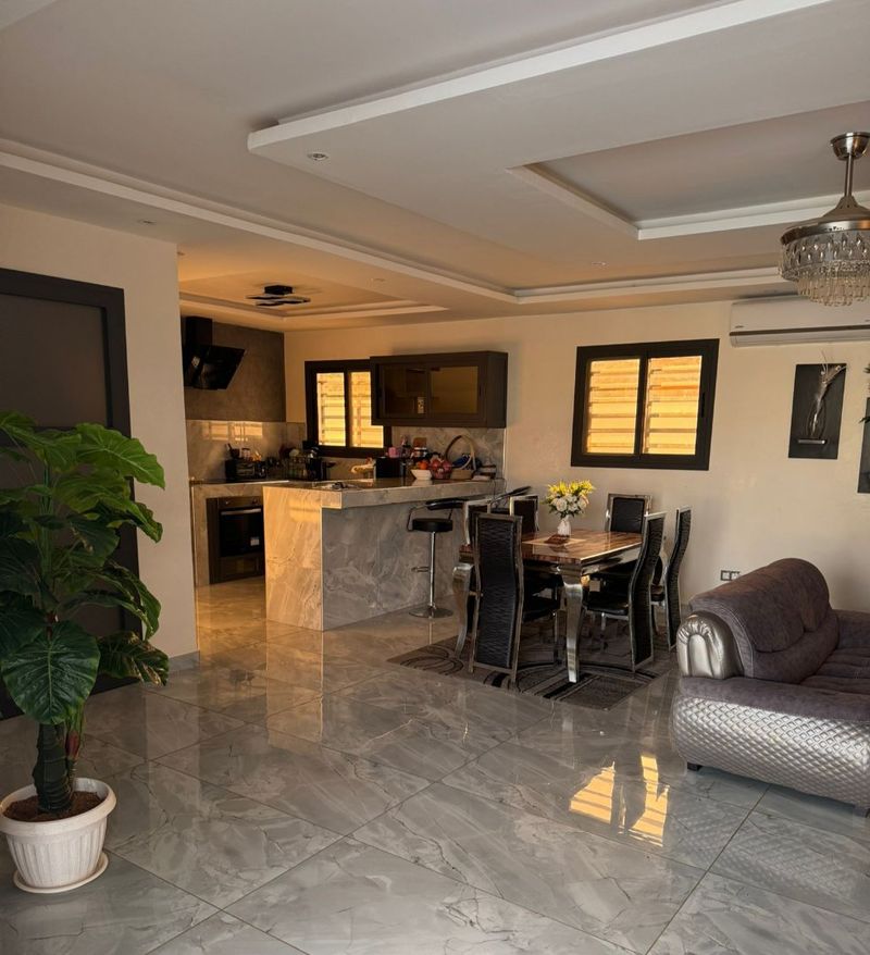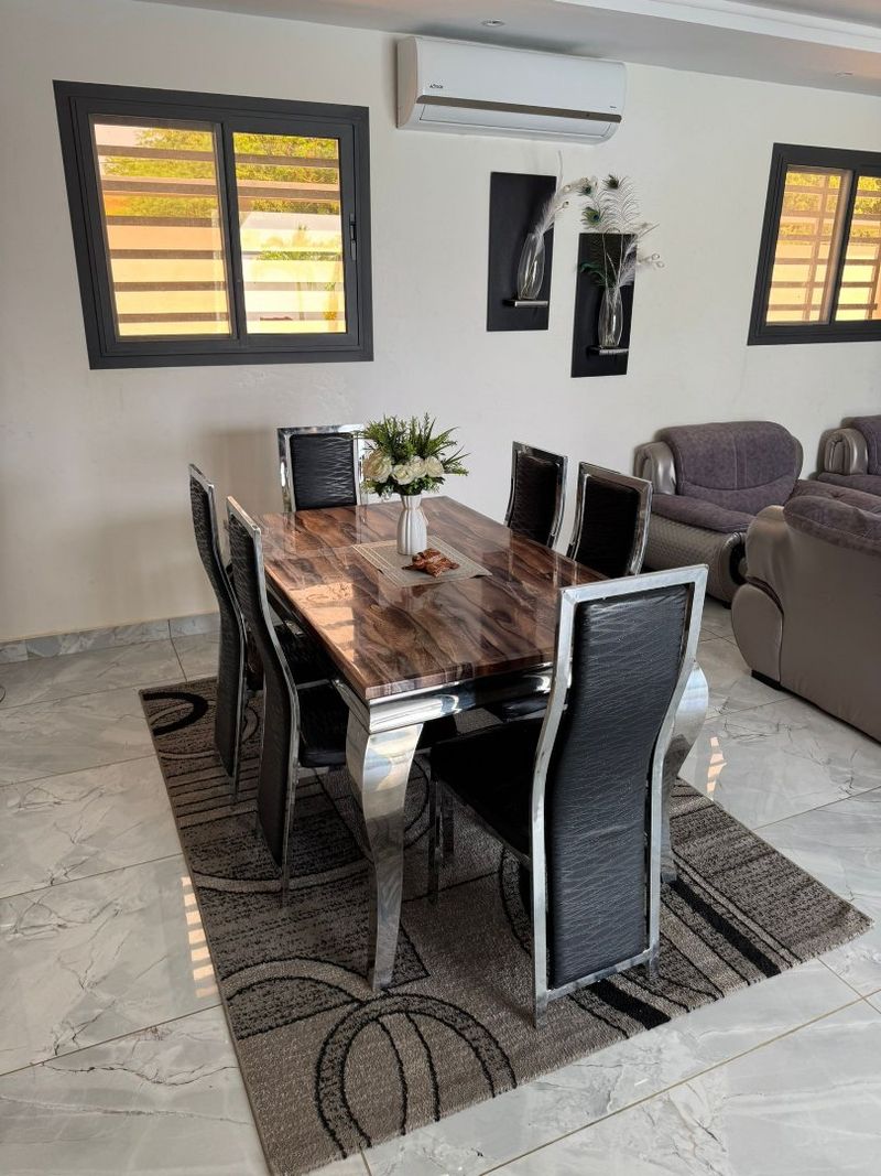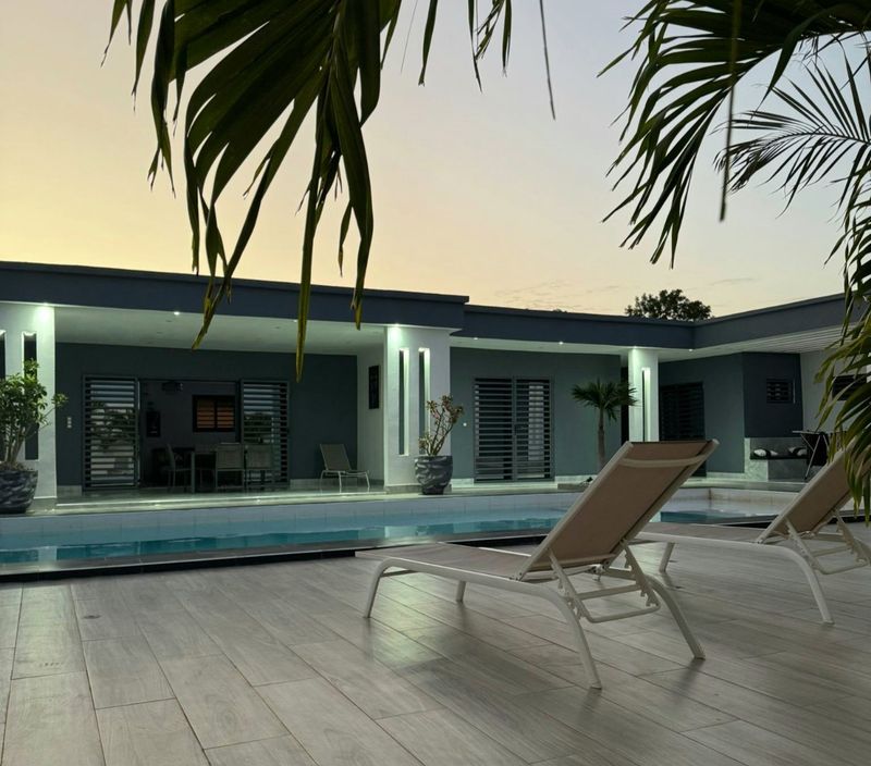 SELECTION SENEGAL vous propose cette très belle villa moderne haut standing entièrement meublée et équipée située à 500m de la route, 5mns de la bretelle d’autoroute et de l’école bilingue anglaise EBA, dans un domaine résidentiel paisible et sécurisé. La villa est composée de 4 chambres, dont 2 en studio indépendant, toutes avec leur salle d’eau et la parentale avec son dressing. La villa comprend également un beau séjour avec salon, salle à manger et une cuisine US équipée donnant sur une terrasse couverte et une belle piscine, une arrière cuisine équipée, un wc visiteurs, un garage fermé et une place de parking.